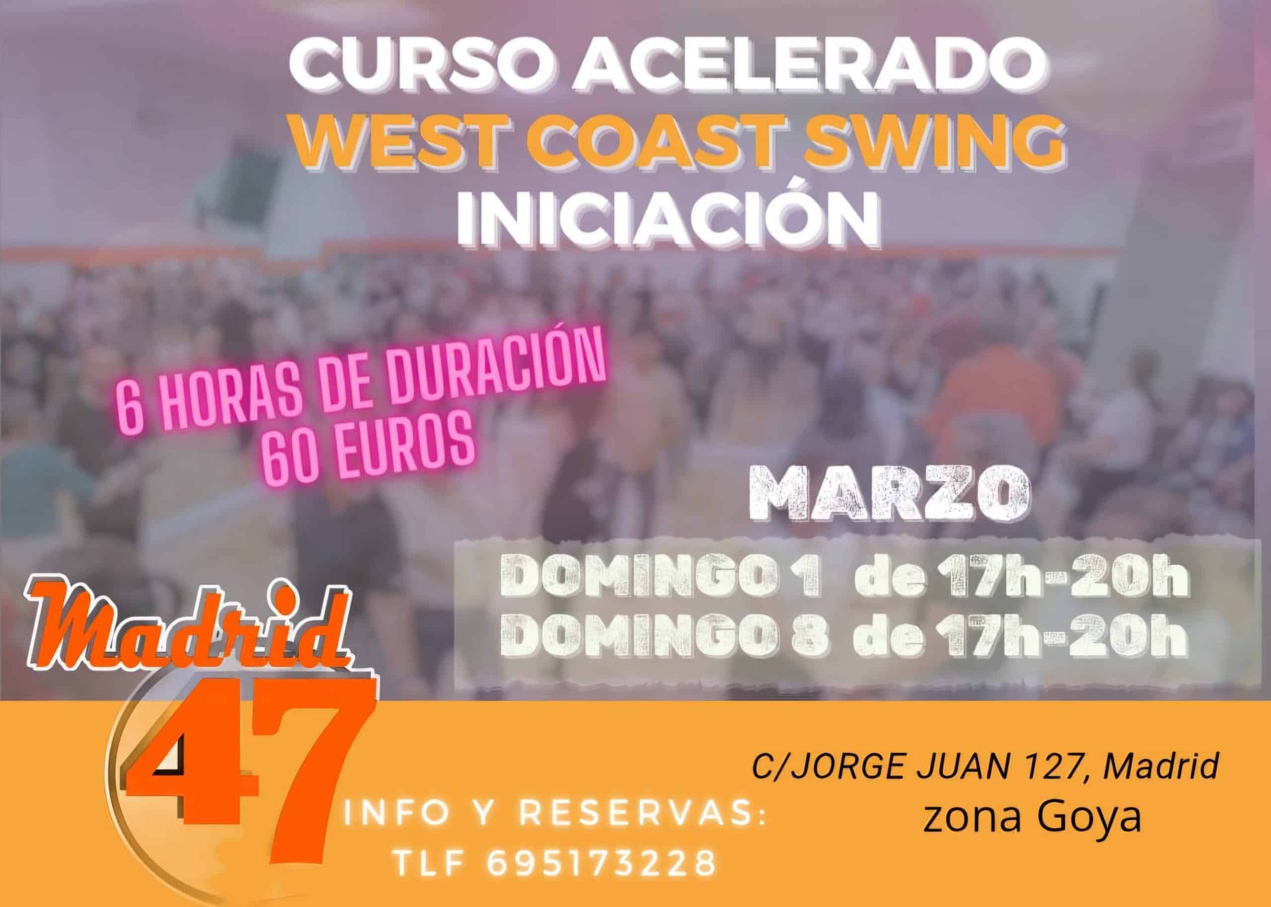 💥 CURSO ACELERADO de west coast swing iniciación 💥 ¿quieres aprender WCS desde cero y mejorar tú nivel rápidamente? Te proponemos este curso de *6 horas* impatidas en dos sesiones de 3 horas cada una, en fín de semana. Ideal si quieres incorporarte a clases regulares ya iniciadas. ¡No pierdas la oportunidad el próximo mes […]